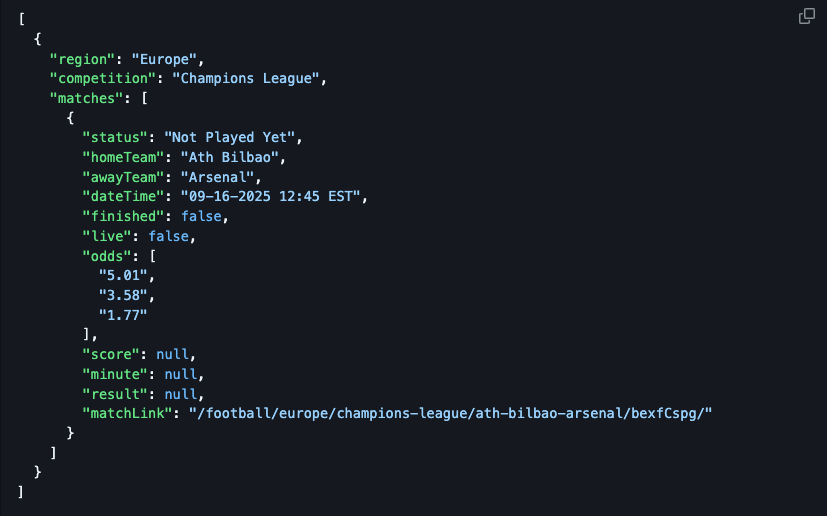 A RESTful API that provides live match data, betting odds, and match results for soccer matches.